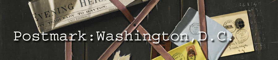 About the PostmarkWashington logotype background: Detail, John F. Peto, Old Time Letter Rack, 1894. Collection of Terra Foundation of American Art. Ex Manoogian.
